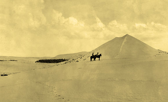 | Two Australian Lighthorsemen Pause at Mt. Meredith in the Bleak Sinai |