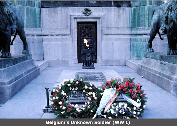 The bi-lingual plaque reads: Here lies an unknown soldier who died for the Motherland (French) Here lies an unknown soldier who died for the Fatherland (Dutch) |
