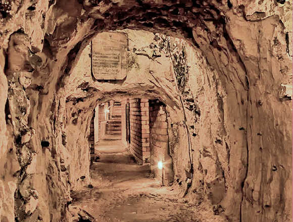 The underground portion of Naours began as a quarry in antiquity that was steadily enlarged over successive centuries. The empty subterranean chambers gave area residents a convenient place to store goods and take shelter from the elements, and to hide from raiders and roving armies looking for supplies. By the 17th century, thanks to the rampant destruction of the Thirty Years’ War, the underground city had a large and fairly well-settled contingent of residents. As Western Europe stabilized and hiding in caves for long periods of time became less necessary, the existence of this underground complex was forgotten until it was rediscovered in 1887.