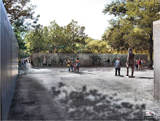 JW: It was crazy. . . As an unlicensed designer (not yet legally allowed to call myself an architect), there was really no way that I could compete with the other teams, or even carry out the project. I had to have someone who could take on that role. [After several other attempts, friends in another firm] called me back and said, "Hey, so there's this guy we know in Baltimore. He was in our wedding and he's a partner at this firm called GWWO Architects. They're good people.". I contacted them up, told them what I wanted to do, and they agreed to sign on to the project on the spot. I didn't know it at the time, but they already had an incredible relationship with all of the agencies in DC and had already earned much respect for turning out wonderful projects with the National Park Service. As soon as I showed up at the next meeting and said I had signed GWWO on to the team, I got lots of head nods of approval. At that point, it felt like people actually started to take me seriously, and we had a hope of winning. [Other key additions to the design team included sculptor Sabin Howard and landscape architect the David Rubin Land Collective.]