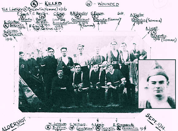| Author with His Training Mates at Alsdershot, 1914 Note: All His Friends Were Killed or Wounded in the War (Click on Image to Enlarge) |